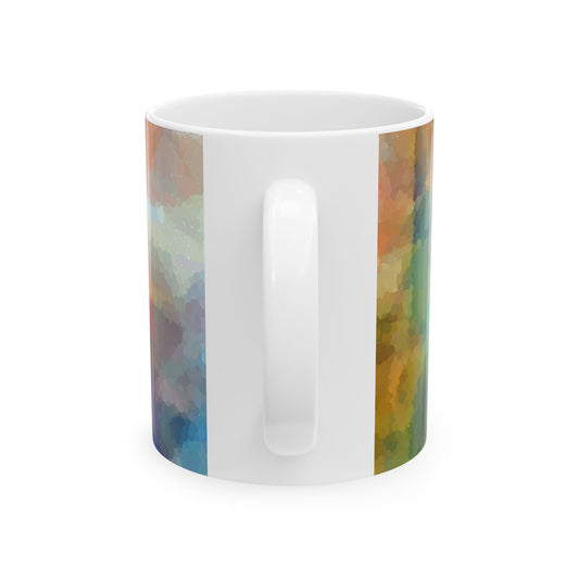 Keramiktasse mit abstraktem, farbenfrohem Katzenporträt, 312 ml